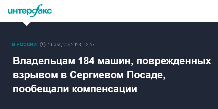 Москва. 11 августа. INTERFAX.RU - Власти Сергиево-Посадского округа возместят ущерб владельцам 184 автомобилей, поврежденных при взрыве 9 августа, сообщил в Telegram губернатор Московской области Андрей Воробьев.