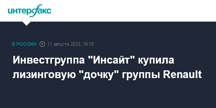 Инвестгруппа "Инсайт" купила лизинговую "дочку" группы Renault