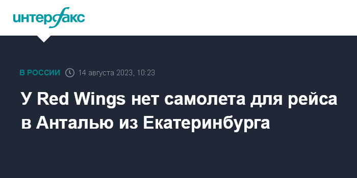 Москва. 14 августа. INTERFAX.RU - Вылет регулярного рейса авиакомпании Red Wings из екатеринбургского аэропорта "Кольцово" в Анталью вторые сутки задерживается по техническим причинам, из-за отсутствия самолета, сообщили "Интерфаксу" в пресс-службе Уральской транспортной прокуратуры.