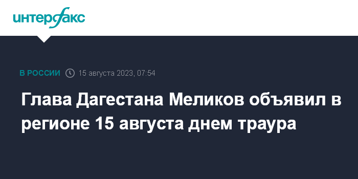 Глава Дагестана Меликов объявил в регионе 15 августа днем траура
