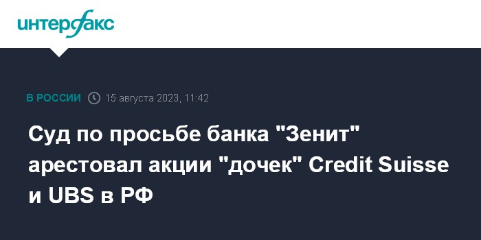 Суд по просьбе банка "Зенит" арестовал акции "дочек" Credit Suisse и UBS в РФ