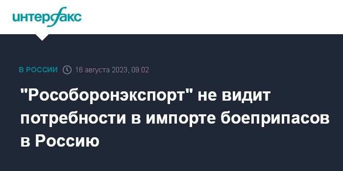 Москва. 16 августа. INTERFAX.RU - "Рособоронэкспорт" не занимается импортом в Россию боеприпасов, в этом нет потребности, заявил "Интерфаксу" на форуме "Армия-2023" глава компании Александр Михеев. Так он прокомментировал публикации западных СМИ о дефиците боеприпасов в России.
