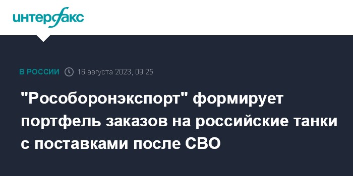 "Рособоронэкспорт" формирует портфель заказов на российские танки с поставками после СВО