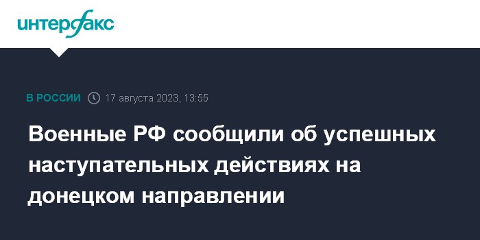Москва. 17 августа. INTERFAX.RU - Российские штурмовые отряды провели успешные наступательные действия и улучшили положение на донецком направлении, заявил официальный представитель Минобороны РФ Игорь Конашенков.