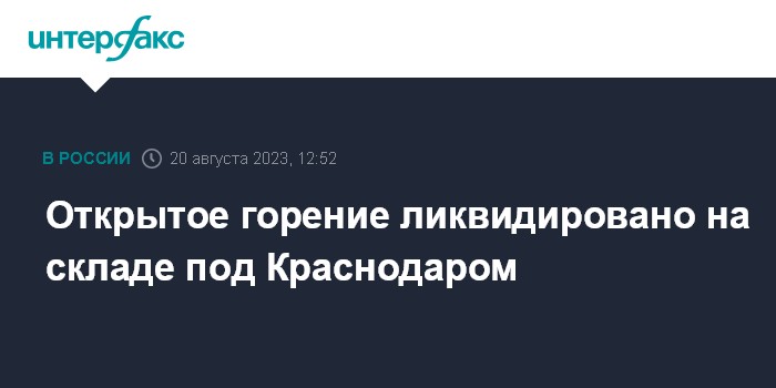 Москва. 20 августа. INTERFAX.RU - Спасатели ликвидировали открытое горение на площади 500 кв. метров на складе в станице Старокорсунской под Краснодаром, сообщает пресс-служба ГУ МЧС России по Краснодарскому краю в воскресенье.