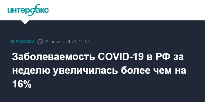 Заболеваемость COVID-19 в РФ за неделю увеличилась более чем на 16%