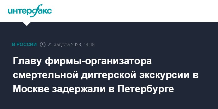 Москва. 22 августа. INTERFAX.RU - Из Петербурга в Москву должны доставить гендиректора ООО "Спутник" - фирмы, которая организовала диггерскую экскурсию по подземельям Москвы и продавала на нее билеты, следует из сообщения Следственного комитета. 20 августа участники экскурсии погибли в коллекторе из-за ливня.
