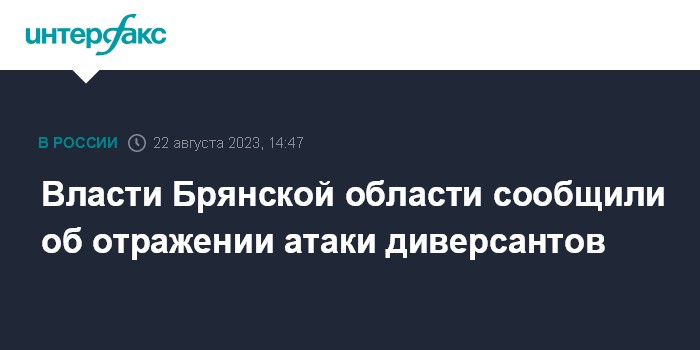 Москва. 22 августа. INTERFAX.RU - Губернатор Брянской области Александр Богомаз сообщил об атаке диверсантов в Климовском районе.