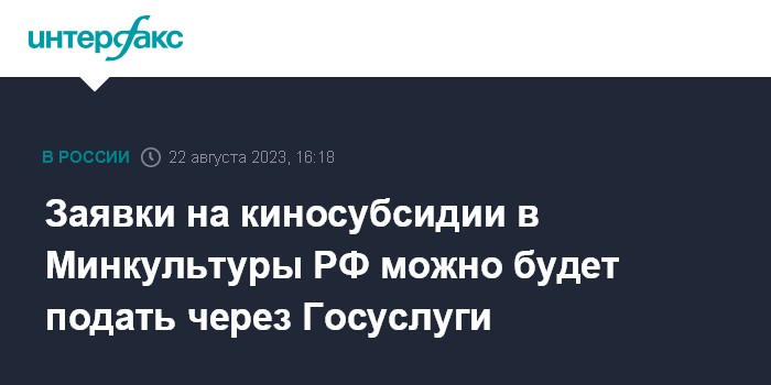 Заявки на киносубсидии в Минкультуры РФ можно будет подать через Госуслуги