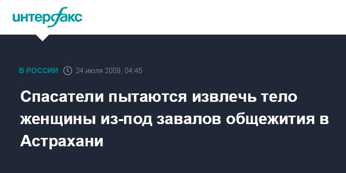 Обрушение одной секции многоквартирного кирпичного жилого дома-общежития N 39/2 по улице Савушкина Ленинского района города Астрахани произошло 22 июля в 10:25. Было разрушено 25 квартир, в которых проживало не менее 50 человек. За медицинской помощью обратилось 12 человек, четверо из которых госпитализированы, их состояние удовлетворительное.