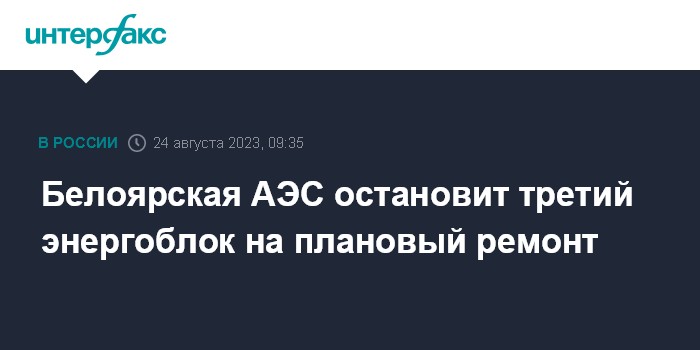 Москва. 24 августа. INTERFAX.RU - Белоярская АЭС (БАЭС, Свердловская область) 24 августа выведет энергоблок №3 (БН-600) в планово-предупредительный ремонт.