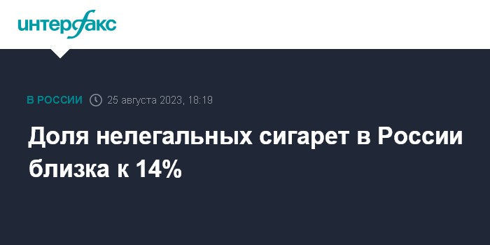 Москва. 25 августа. INTERFAX.RU - Доля нелегального оборота сигарет в России составляет 13,9%, сообщила Ассоциация малоформатной торговли со ссылкой на результаты исследования ННЦК (Национальный научный центр компетенций в сфере противодействия незаконному обороту промышленной продукции).