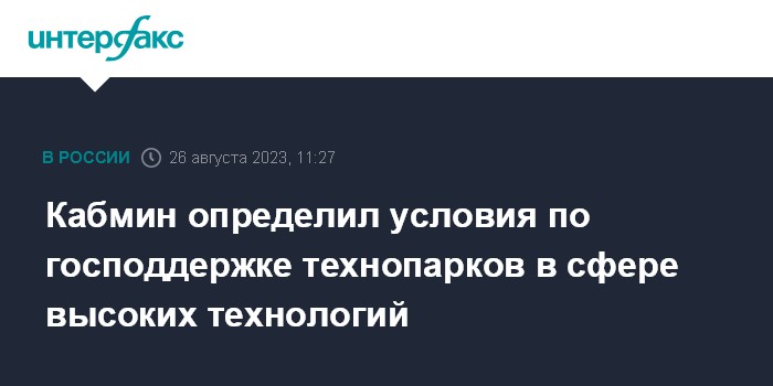 Москва. 26 августа. INTERFAX.RU - Премьер-министр России Михаил Мишустин подписал постановление, определяющее условия оказания господдержки технопаркам, работающим в сфере высоких технологий, сообщает сайт правительства в субботу.