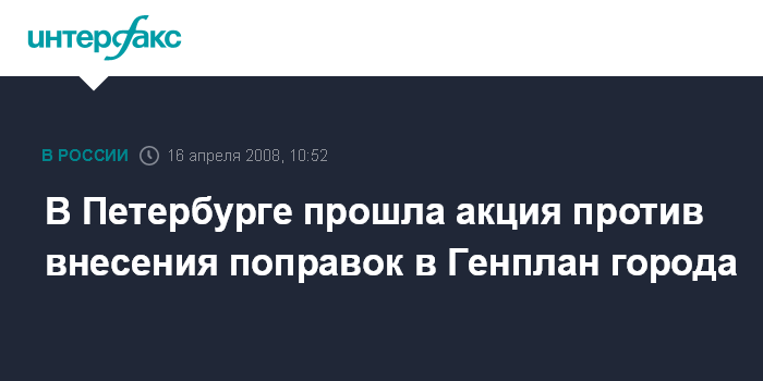 Санкт-Петербург. 16 апреля. INTERFAX.RU - У здания Законодательного собрания Петербурга в среду перед началом заседания депутатов прошел пикет против принятия поправок к генплану, которые находятся на стадии второго чтения.