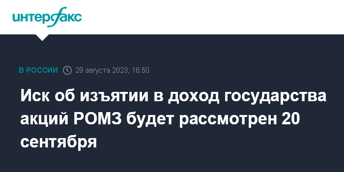 Иск об изъятии в доход государства акций РОМЗ будет рассмотрен 20 сентября