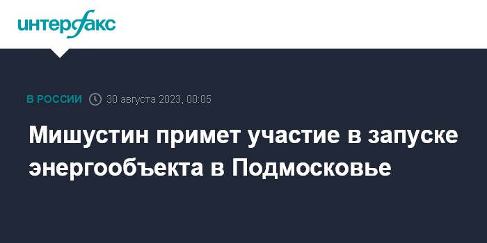 Москва. 30 августа. INTERFAX.RU - Премьер-министр РФ Михаил Мишустин в среду примет участие в запуске энергетического объекта в Московской области, сообщила пресс-служба правительства.