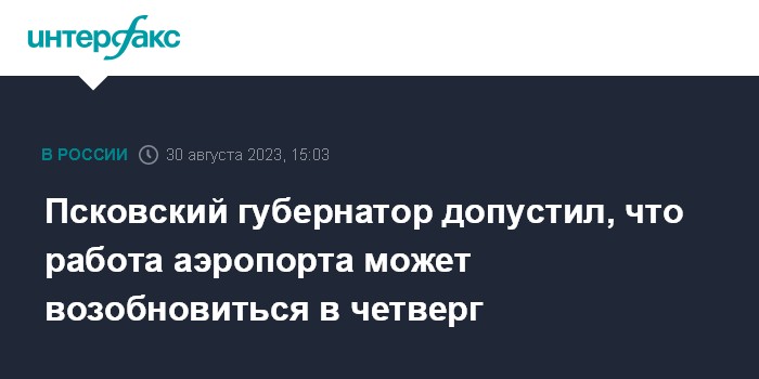 Псковский губернатор допустил, что работа аэропорта может возобновиться в четверг