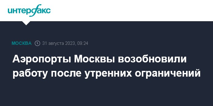 Москва. 31 августа. INTERFAX.RU - Аэропорты Московского авиаузла вернулись к штатной работе после ограничений, которые вводили рано утром из соображений безопасности.