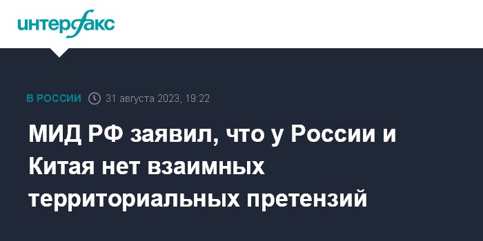 МИД РФ заявил, что у России и Китая нет взаимных территориальных претензий