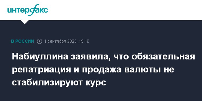 "То, что касается введения мер валютного контроля, они действительно сыграли свою роль весной прошлого года, но в сочетании с другими мерами, в том числе с повышением ключевой ставки, именно как краткосрочные меры. (...) На мой взгляд, мера по возврату обязательной продажи валютной выручки может не дать того эффекта, который ждут от нее. Значительную часть экспортной выручки наши экспортеры получают в рублях. Второе: если какую-то часть валютной выручки экспортер продает, он имеет возможность ее завтра выкупить. То есть у нас увеличивается оборот валютного рынка, но не меняется баланс спроса и предложения", - сказала глава ЦБ журналистам в кулуарах конференции, на пленарном заседании которой министр финансов Антон Силуанов намекнул на необходимость в условиях ослабления рубля жестче администрировать потоки валютной выручки экспортеров.