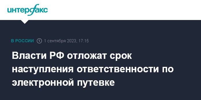 Власти РФ отложат срок наступления ответственности по электронной путевке