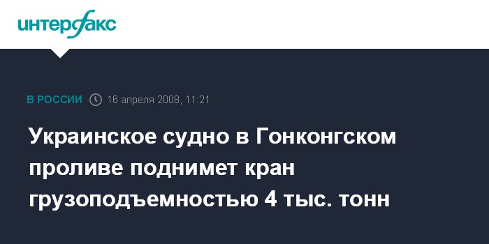 Киев. 16 апреля. INTERFAX.RU - На место затонувшего в Гонконгском проливе украинского судна "Нафтогаз-67" в среду прибыл плавучий кран грузоподъемностью 4 тыс. тонн.