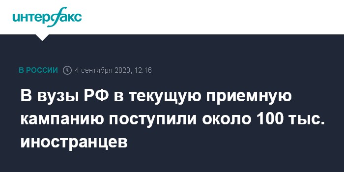 В вузы РФ в текущую приемную кампанию поступили около 100 тыс. иностранцев