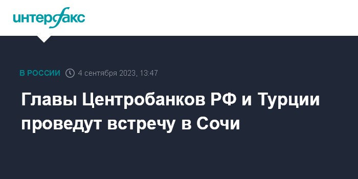 Главы Центробанков РФ и Турции проведут встречу в Сочи