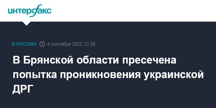 Москва. 4 сентября. INTERFAX.RU - Губернатор Брянской области Александр Богомаз сообщил о пресечении попытки проникновения диверсионно-разведывательной группы (ДРГ).