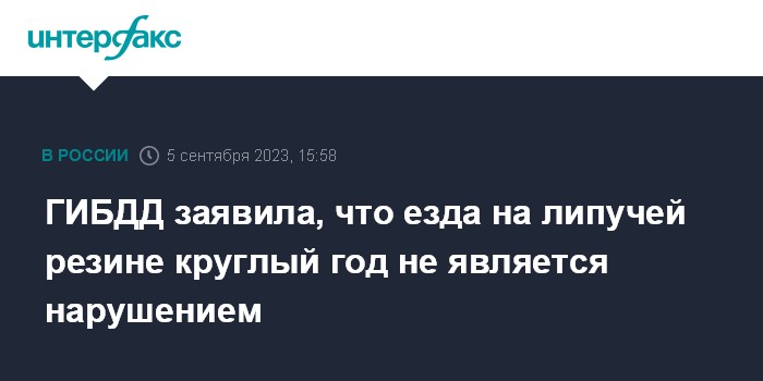 Москва. 5 сентября. INTERFAX.RU - Передвижение на автомобиле с липучей резиной возможно круглогодично и не влечет запрет на эксплуатацию транспортного средства, заявил начальник ГИБДД РФ Михаил Черников.