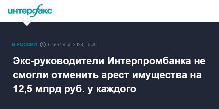 Экс-руководители Интерпромбанка не смогли отменить арест имущества на 12,5 млрд руб. у каждого