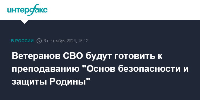 Ветеранов СВО будут готовить к преподаванию "Основ безопасности и защиты Родины"