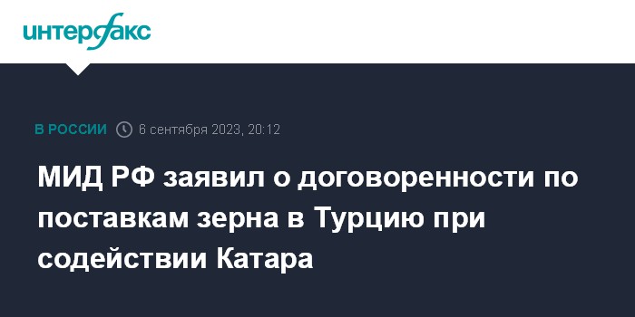 МИД РФ заявил о договоренности по поставкам зерна в Турцию при содействии Катара