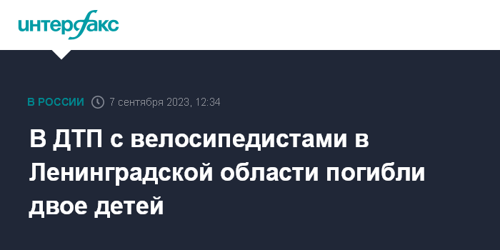 Москва. 7 сентября. INTERFAX.RU - В аварии на трассе "Скандинавия" в Ленинградской области с участием велосипедистов и фуры погибли двое детей, сообщает пресс-служба администрации региона.