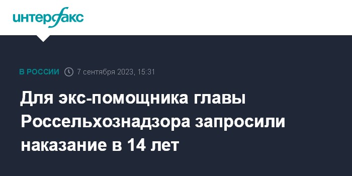 Для экс-помощника главы Россельхознадзора запросили наказание в 14 лет