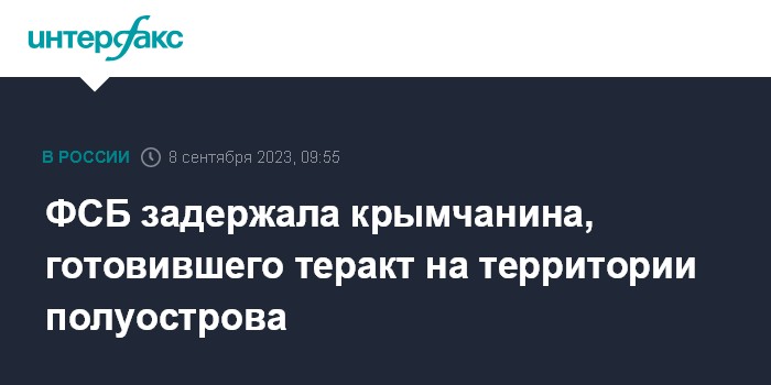 Москва. 8 сентября. INTERFAX.RU - ФСБ РФ сообщила о задержании жителя Севастополя, готовившего теракт на территории полуострова по заданию украинской разведки и собиравшего информацию о российских военных объектах.