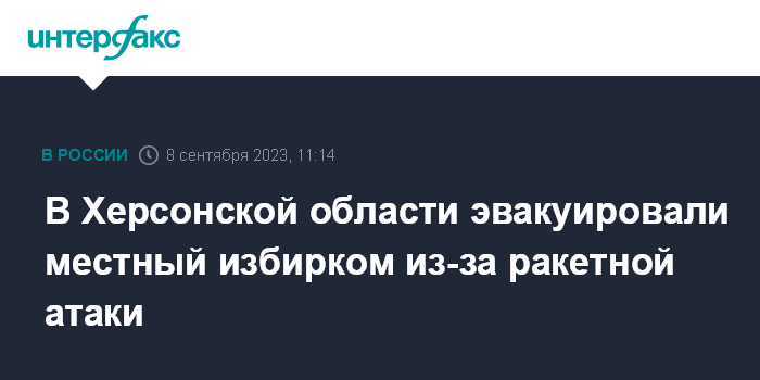 Москва. 8 сентября. INTERFAX.RU - Избирательная комиссия в Херсонской области эвакуирована из-за объявленной ракетной атаки, сообщил замглавы ЦИК РФ Николай Булаев.