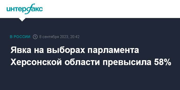 Москва. 8 сентября. INTERFAX.RU - Более 58% избирателей проголосовали на выборах депутатов Херсонской областной думы к вечеру пятницы, сообщила председатель избирательной комиссии региона Марина Захарова.