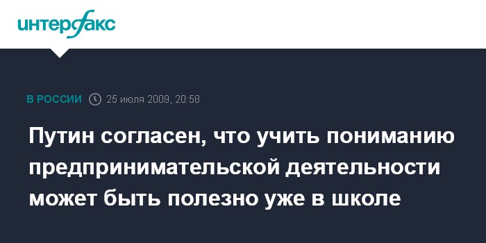 "Нужно, чтобы люди понимали в молодом возрасте, что такое предпринимательская деятельность, но нужно подумать, как это сделать в рамках действующего образования", - ответил В.Путин.