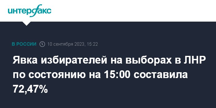 "По состоянию на 15:00 10 сентября явка избирателей на выборах депутатов народного совета Луганской Народной Республики первого созыва составила 72,47%", - сообщил ЦИК ЛНР в своем телеграм-канале.
