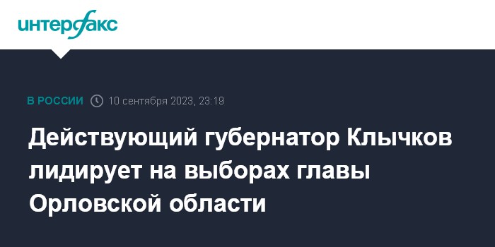 Москва. 10 сентября. INTERFAX.RU - Действующий губернатор Орловской области Андрей Клычков (КПРФ) набирает 75,77% по итогам обработки 16,83% протоколов, следует из данных ЦИК.