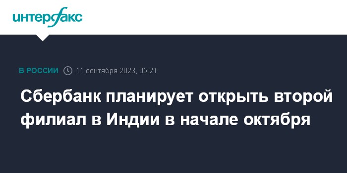 Сбербанк планирует открыть второй филиал в Индии в начале октября