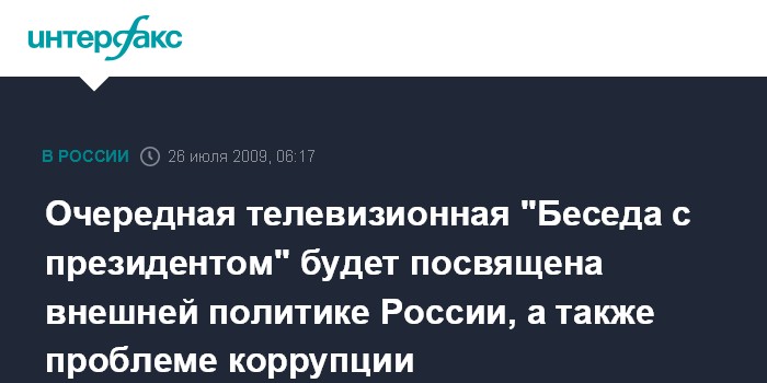 Москва. 26 июля. ИНТЕРФАКС - Очередная, шестая по счету "Беседа с президентом России" выйдет в эфир в воскресенье, 26 июля, на телеканале НТВ.