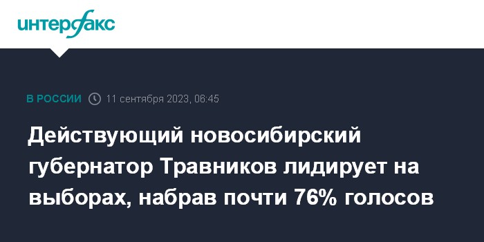 Действующий новосибирский губернатор Травников лидирует на выборах, набрав почти 76% голосов