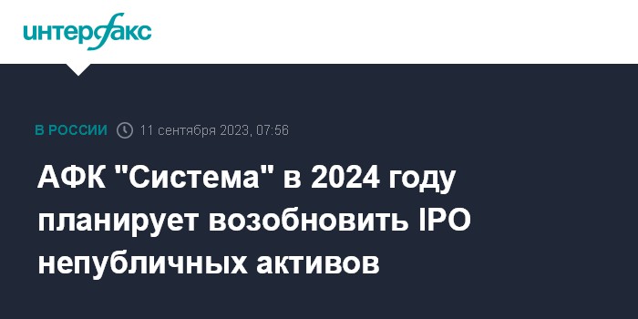 АФК "Система" в 2024 году планирует возобновить IPO непубличных активов