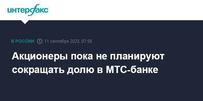 Москва. 11 сентября. INTERFAX.RU - ПАО "МТС" пока не планирует сокращать долю в дочернем МТС-банке, на который с февраля 2023 года распространяются санкции США и Великобритании.