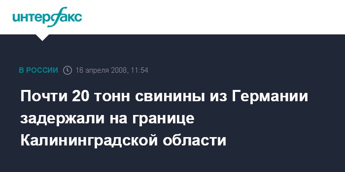 Почти 20 тонн свинины из Германии задержали на границе Калининградской области