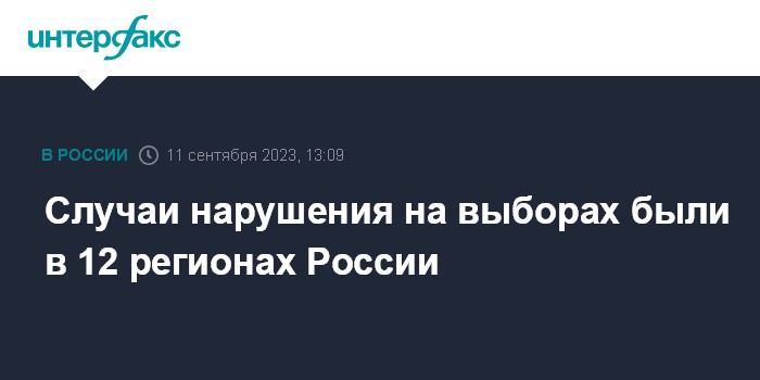 "Что касается конкретных нарушений, которые реально повлияли на ход голосования (...). По информации, полученной от избирательных комиссий, у нас на 10 утра нынешнего дня из 86 субъектов, где были кампании, были случаи в 12 субъектах", - сказала Памфилова в информационном центре ЦИК в понедельник.