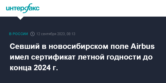 Севший в новосибирском поле Airbus имел сертификат летной годности до конца 2024 г.
