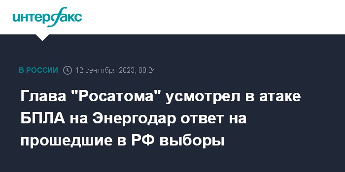 Он связал эту атаку с результатами на выборах в Энергодаре партии "Единая Россия". Глава "Росатома" напомнил, что накануне прошедших выборов в Энергодаре "была очень напряженная ситуация; были обстрелы территории города", в связи с чем городские власти перенесли начало учебного года с 1 на 11 сентября.